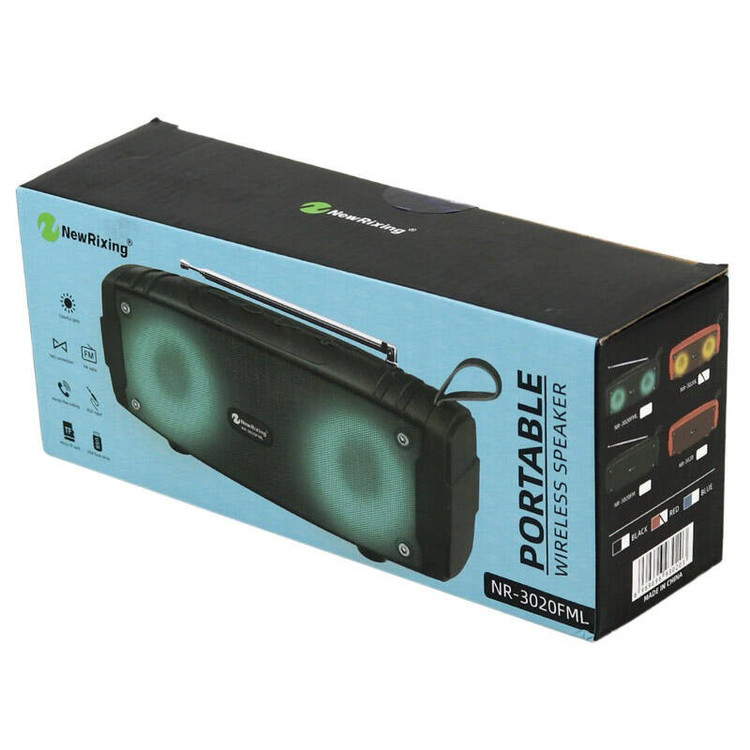 اسپیکر بلوتوثی مدل NR-3020 با طراحی جذاب و کیفیت صدای عالی مناسب برای استفاده در منزل و مسافرت های شما می باشد. این اسپیکر قابلیت اتصال بی سیم و با سیم از طریق شیار کارت حافظه، پورت USB، پورت AUX و بلوتوث را به دستگاه های شما دارد